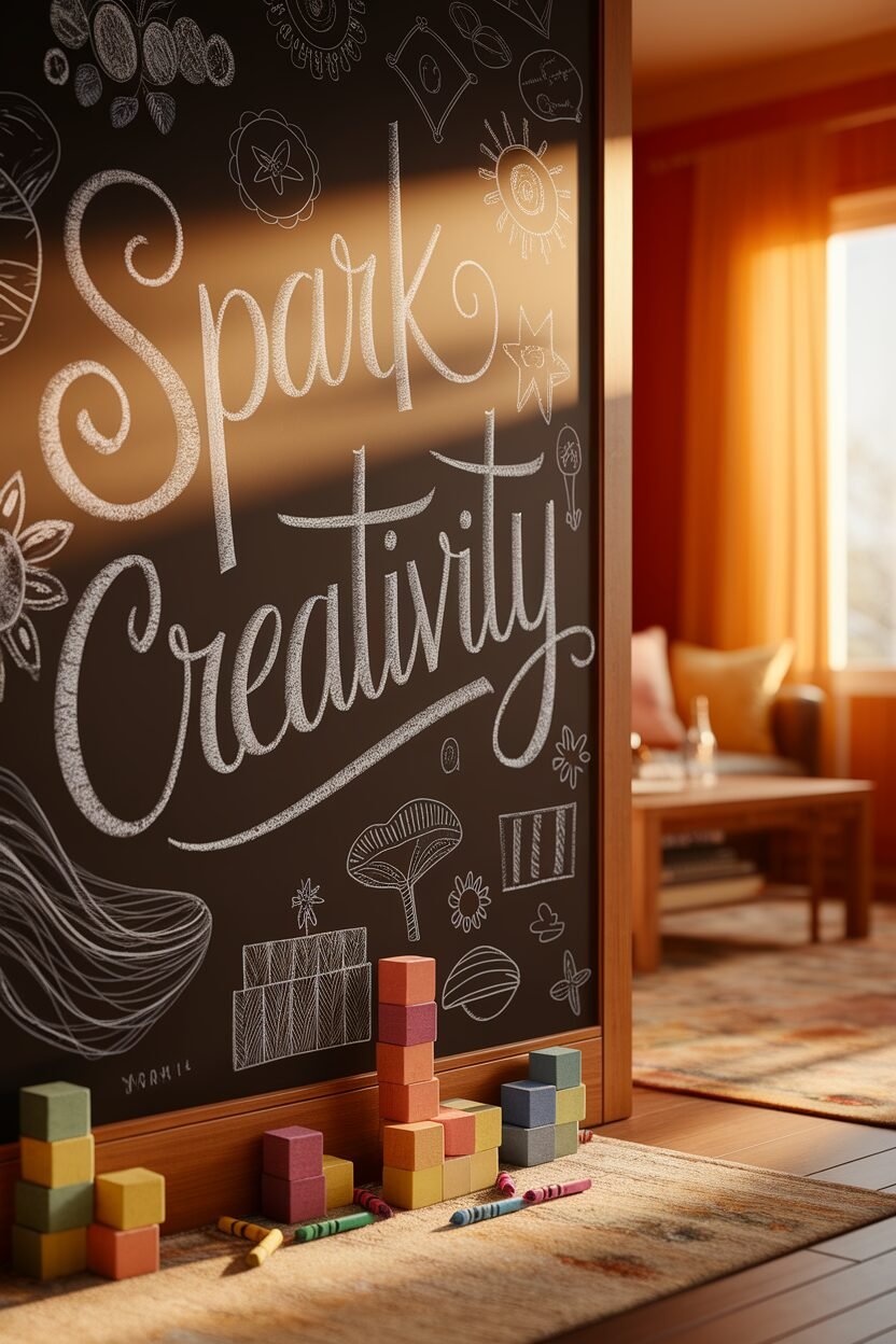 Turn one wall into a chalkboard for endless creativity. Kids can draw, write, and erase as they please.