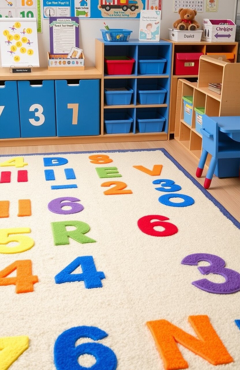 Lay down rugs with bright letters and numbers. These rugs make learning basics fun and interactive during playtime.