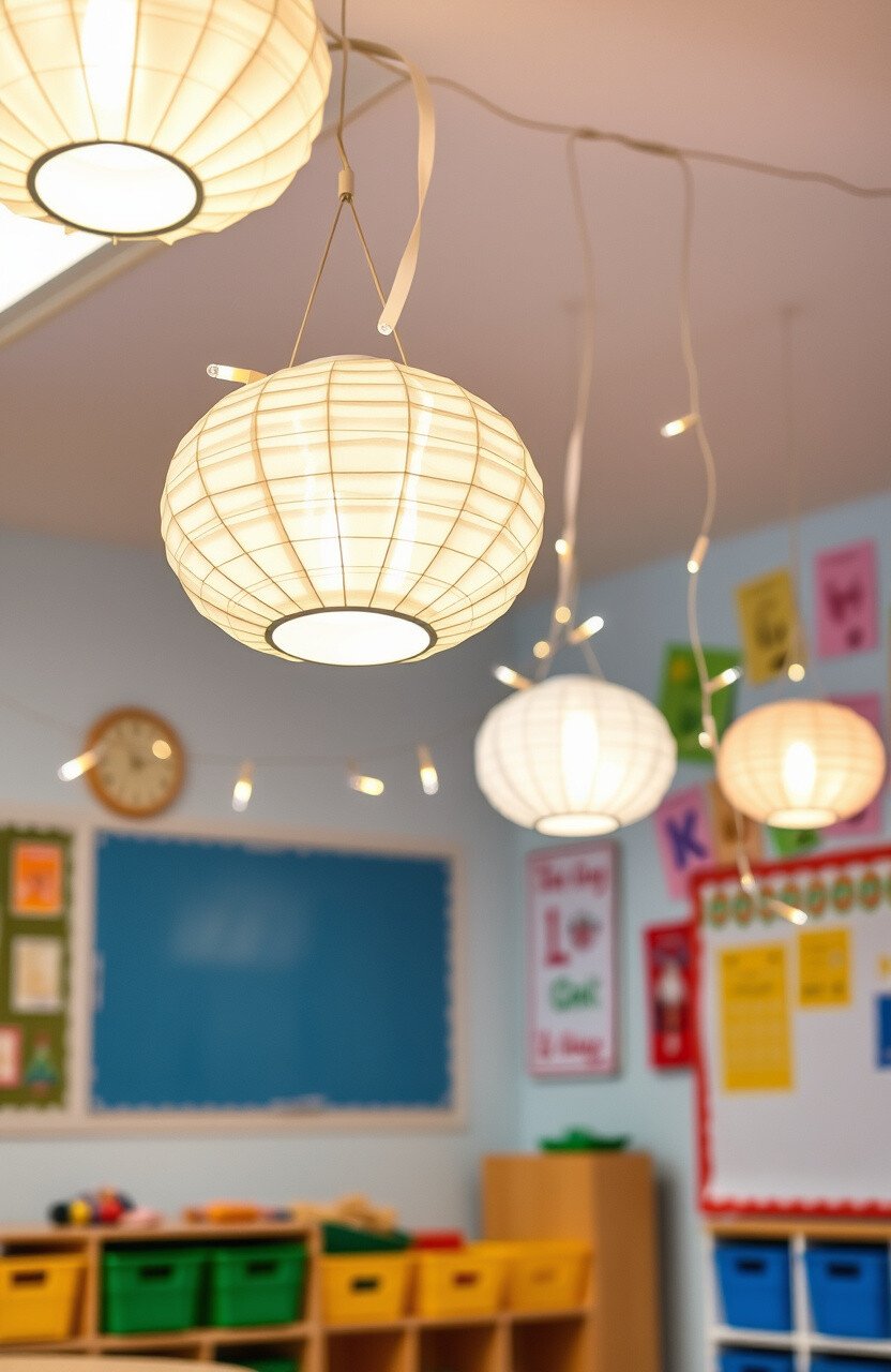 Create unique light fixtures using paper lanterns or fairy lights. Lighting can transform the mood of a classroom and make it feel magical.