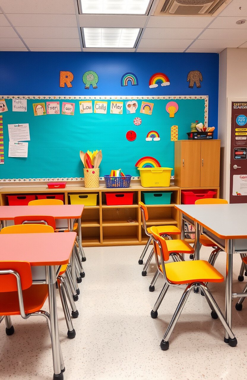Color-coded storage bins can add organization and color. They help keep the classroom tidy and visually appealing.