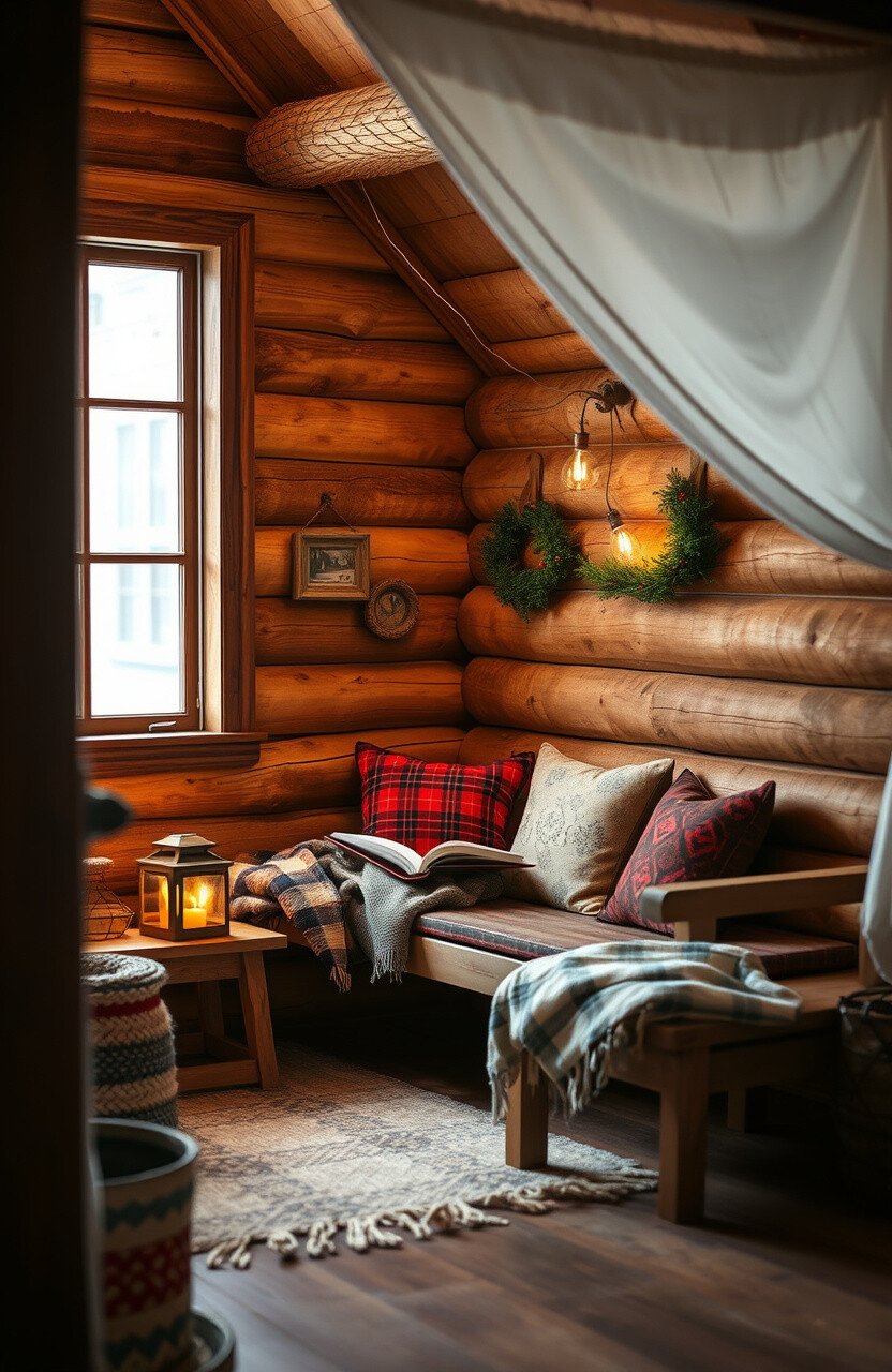 Think of a cozy log cabin with warm woods and plaid patterns. This corner wraps you in a comforting, rustic embrace.