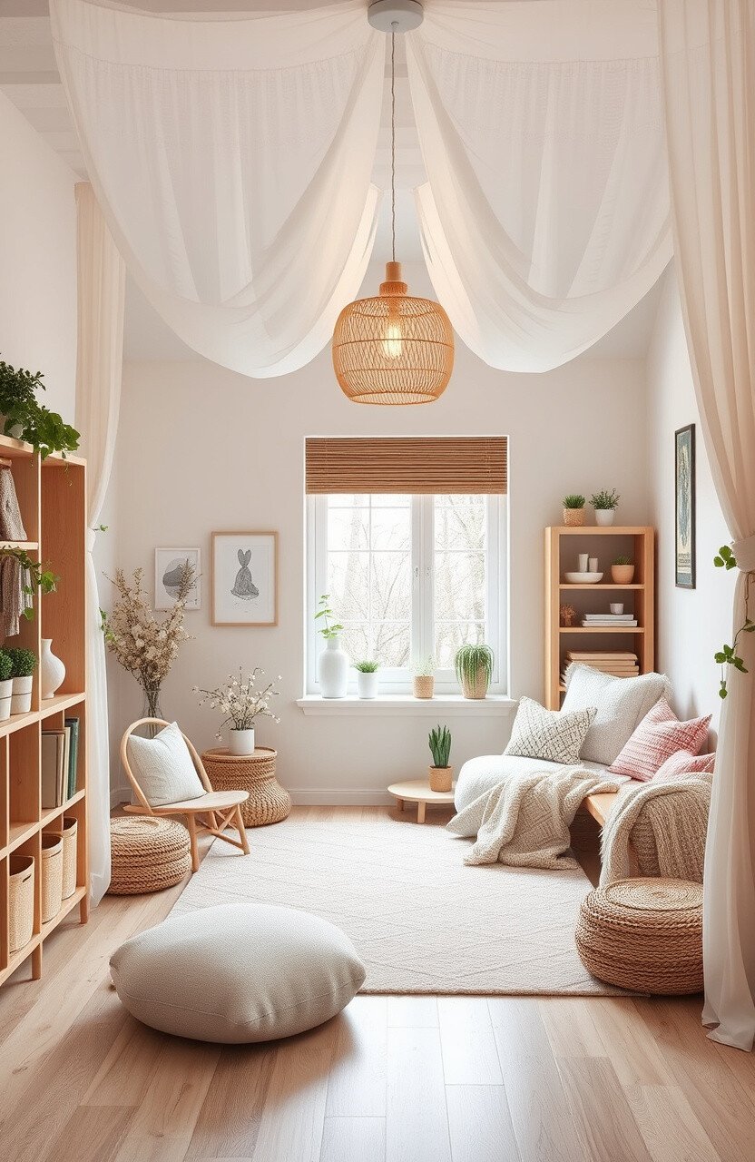 Create a dreamy corner that feels like sitting on a cloud, with light, airy materials. Perfect for those who love a soft, ethereal vibe.
