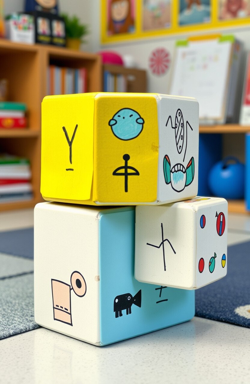 Use cardboard boxes or wooden blocks to create cubes, with stickers or drawings for decoration. This is a low-cost, engaging tool.