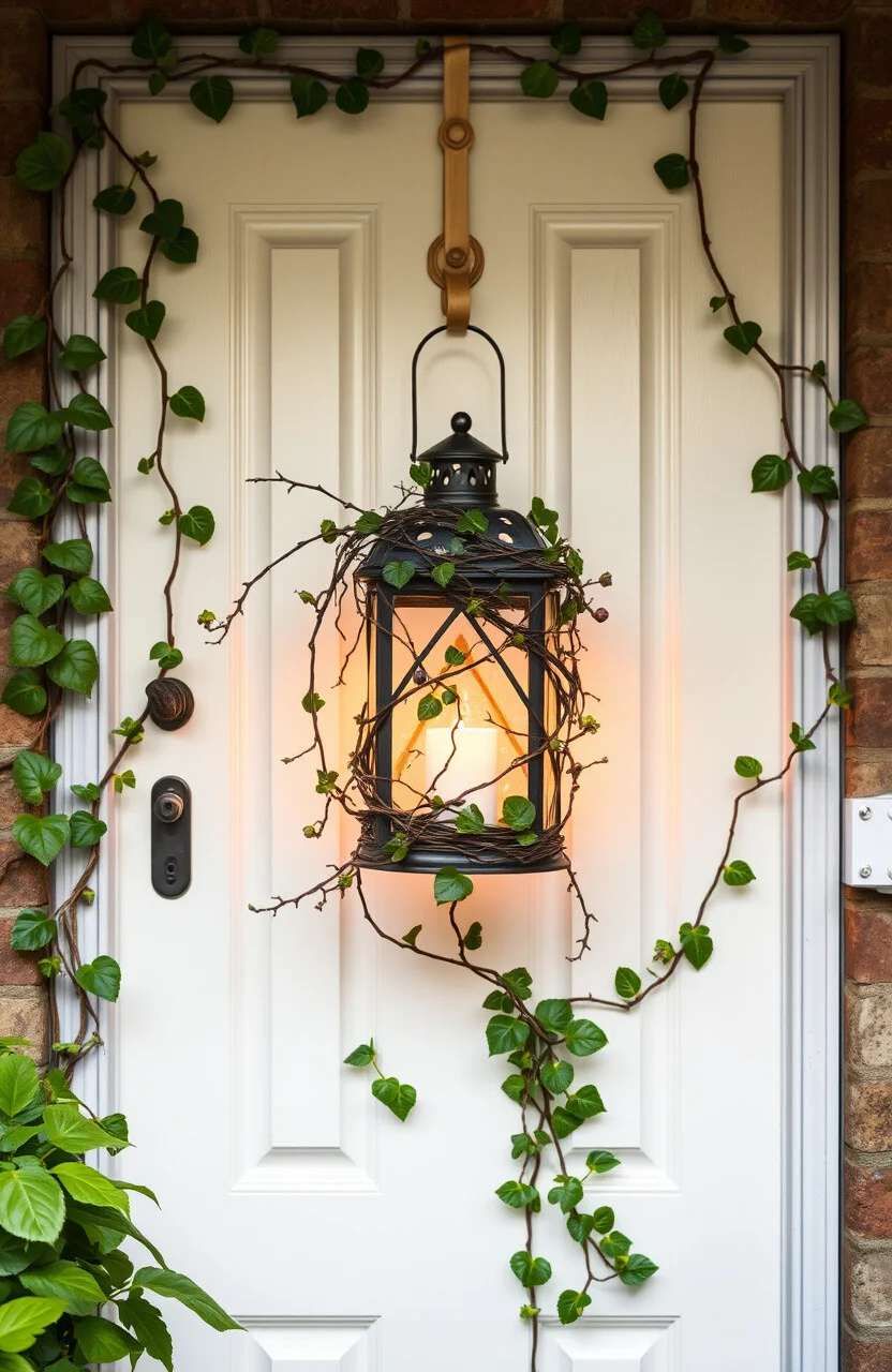 A lantern wrapped in vines brings a touch of whimsy to your door. It’s magical, inviting, and full of charm.