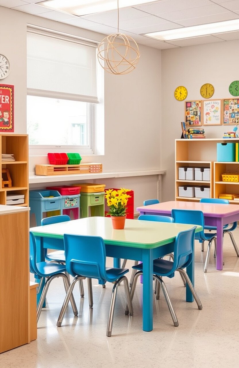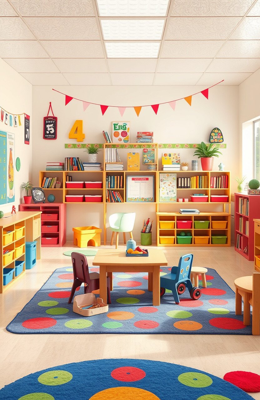 Use rugs or furniture to define different zones clearly. Trendy classrooms often mimic a home-like environment with distinct activity areas.