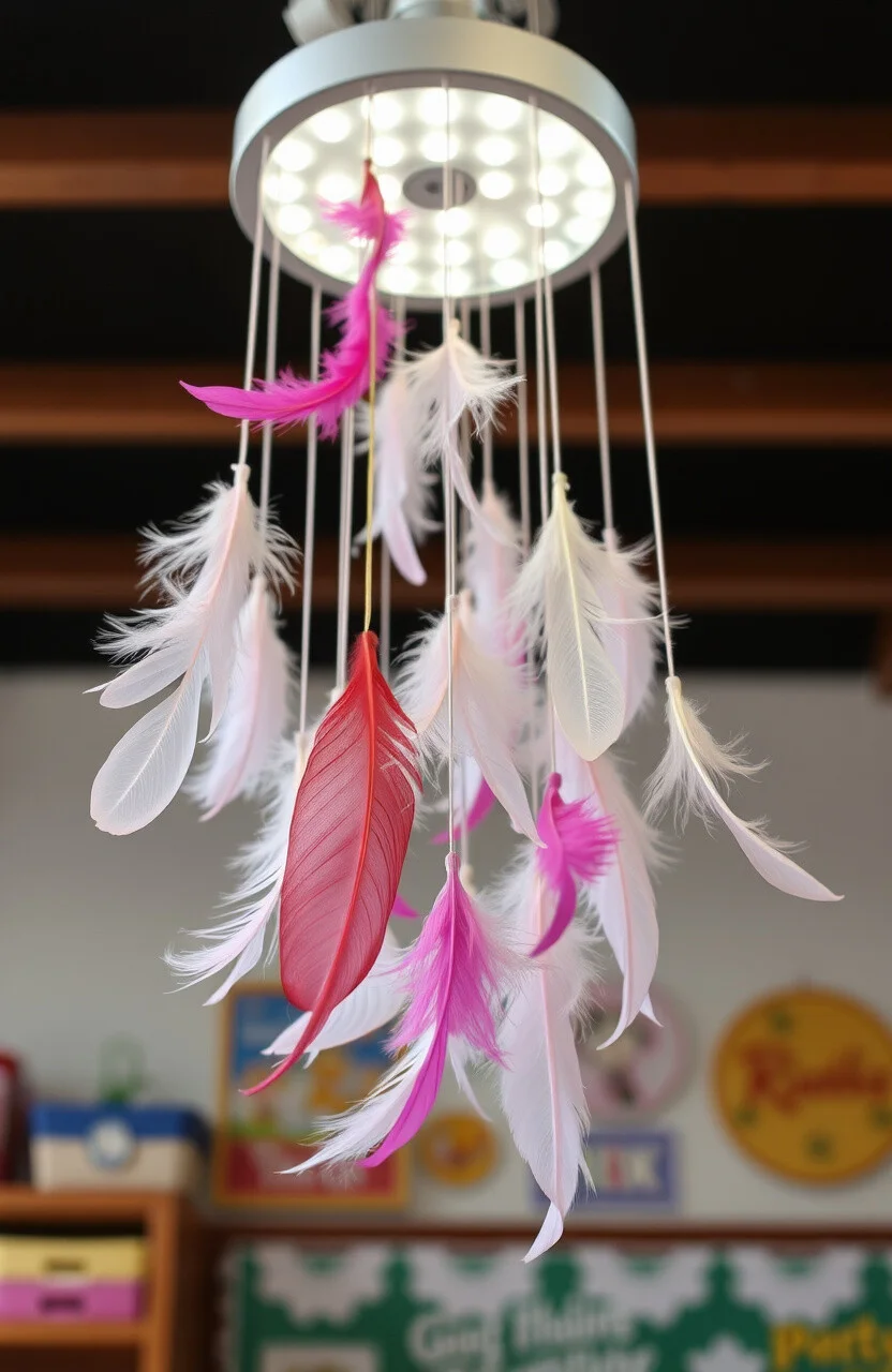 Customize by adding different feather sizes or colors. Hang them with string or wire for a floating effect.