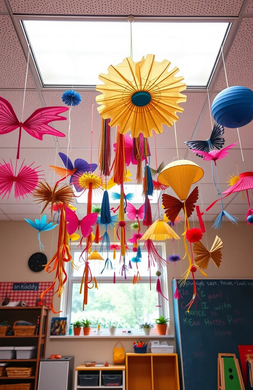 Colorful kites soaring above can turn any classroom into a festival of fun. Use lightweight materials to create kites in various shapes and sizes.