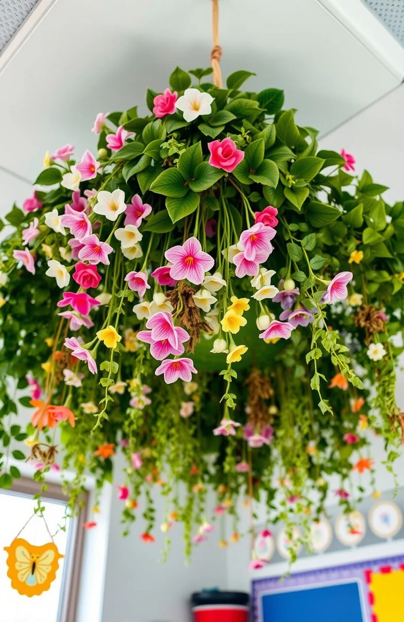 Bring the outdoors inside with a hanging garden of faux plants and flowers. Use vines and blooms to create a lush canopy.