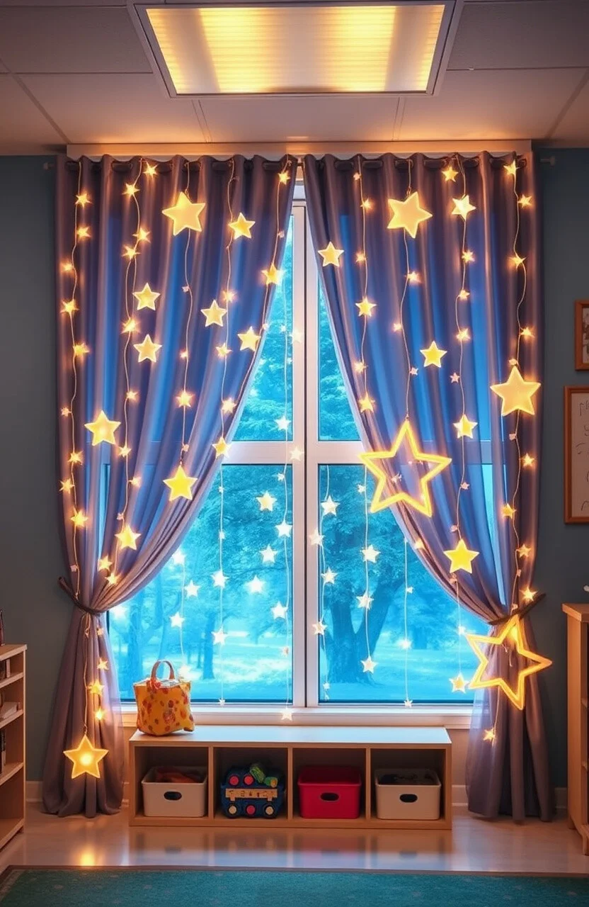 Bring the night sky indoors with twinkling star curtains that shimmer and shine. Use string lights and star-shaped cutouts to create this enchanting scene.