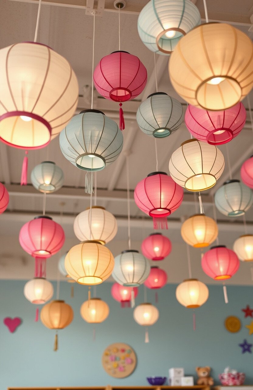 Paper lanterns can add a pop of color and magical glow to your classroom. Hang them at varying heights for a playful effect.