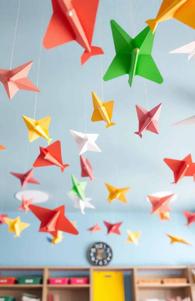 Create a fleet of paper planes soaring overhead for a playful and dynamic display. Use colorful paper to craft these simple yet effective decorations.