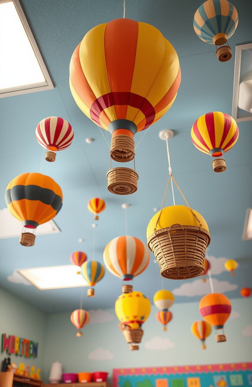 Take your classroom on an adventure with hot air balloon decorations floating overhead. Use paper or fabric to create the balloons and baskets.