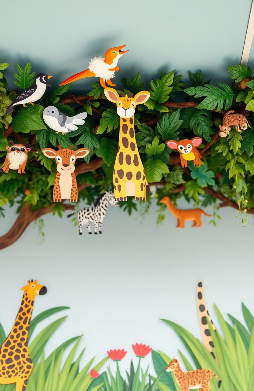 Turn your classroom into a safari adventure with animal cutouts and foliage. Use cardboard and paint to craft a wild scene.