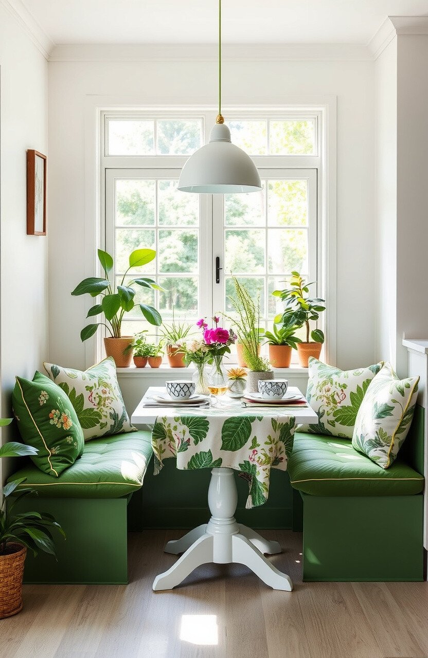 Infuse your mornings with a garden vibe using lush greens and botanical prints. It’s a refreshing way to start the day.