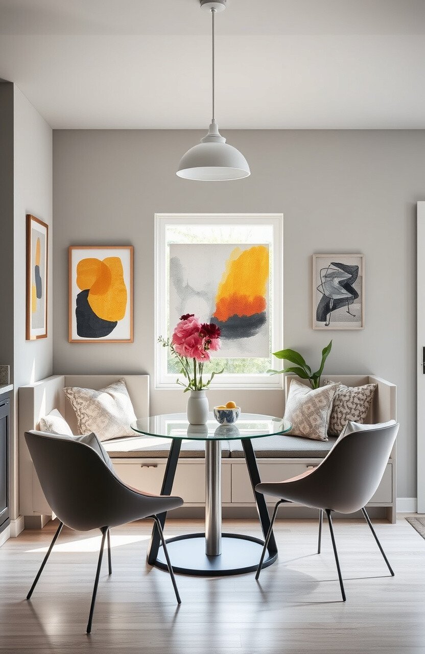For a sleek and clean look, a modern minimalist nook focuses on functionality. It often features neutral colors and streamlined furniture.