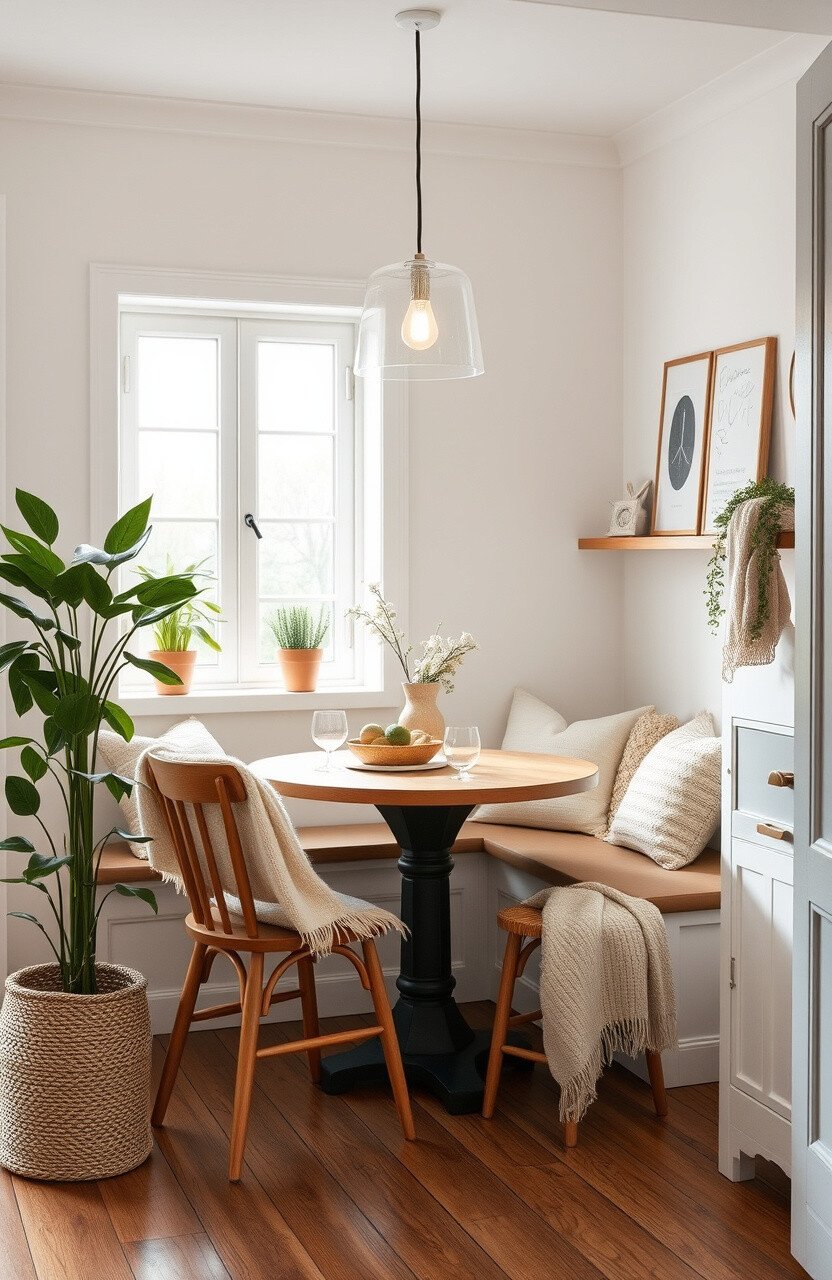 A corner bench offers a snug spot perfect for lazy Sunday brunches. It maximizes space, making it ideal for smaller kitchens.