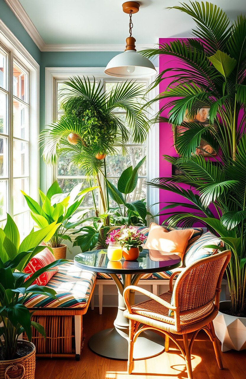 Escape to a tropical paradise with a nook full of vibrant colors and lush greenery. It’s a refreshing way to greet the day.