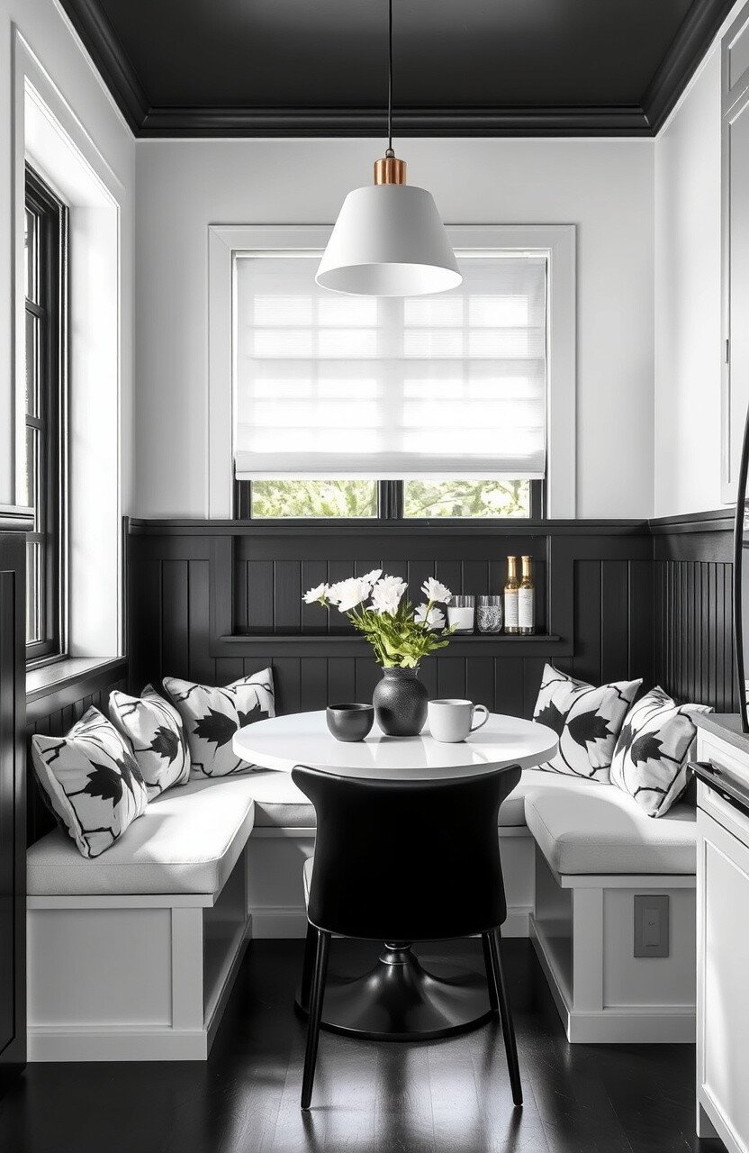 Go for a timeless look with a chic black and white nook featuring bold contrasts. It’s a striking way to start the day.