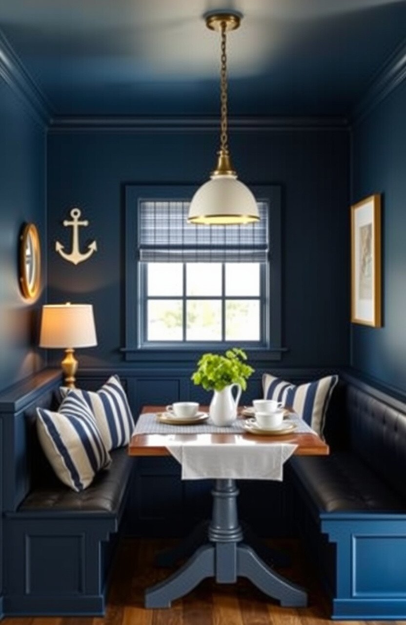 Set sail with a nautical navy nook featuring deep blues and maritime accents. It’s a sophisticated way to start the day.