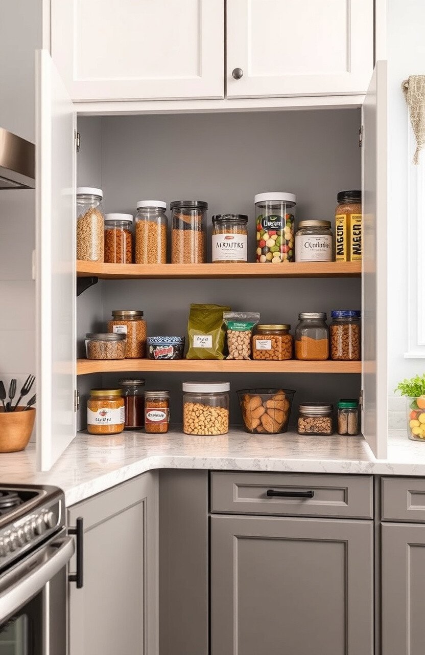 A pull-out pantry maximizes space and keeps everything organized. It’s perfect for small kitchens that need extra storage.