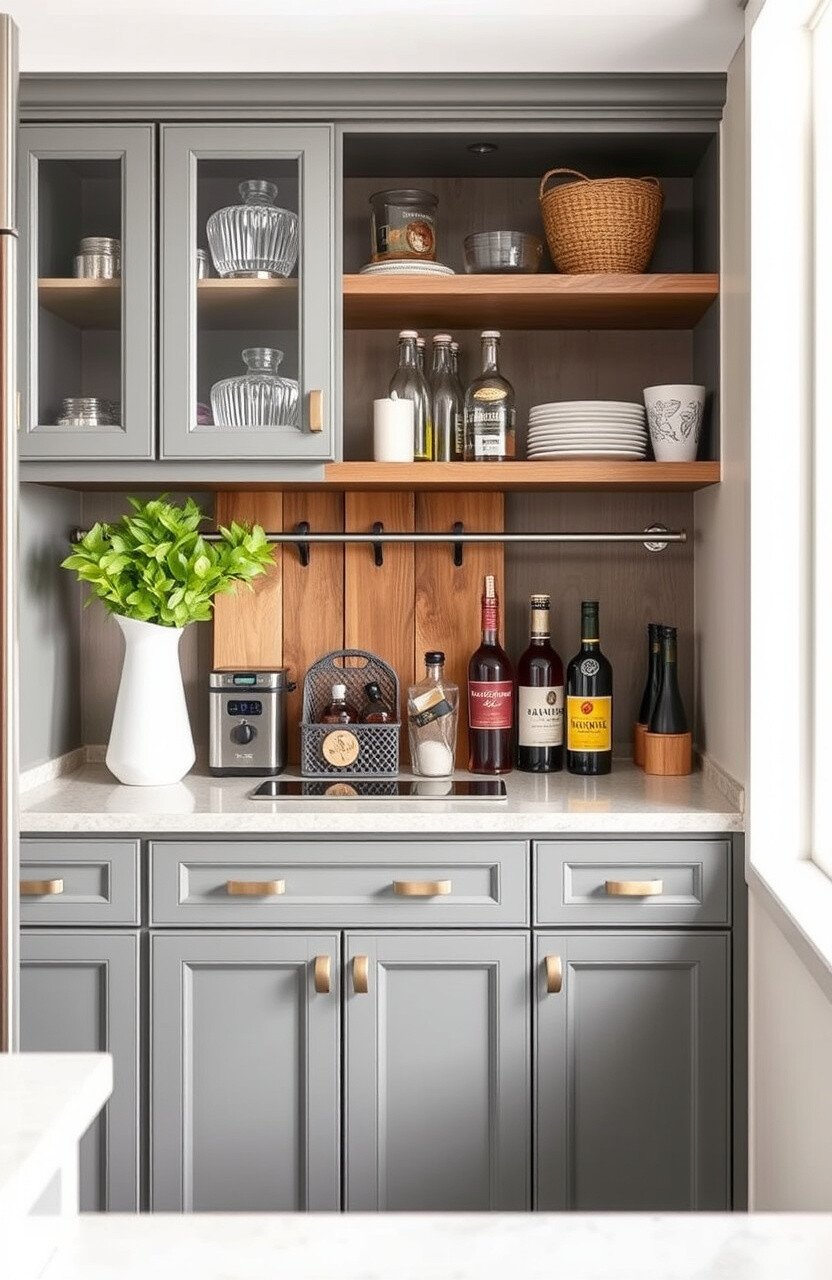 A coffee station cozies up your kitchen corner. It keeps your caffeine essentials organized and within reach.