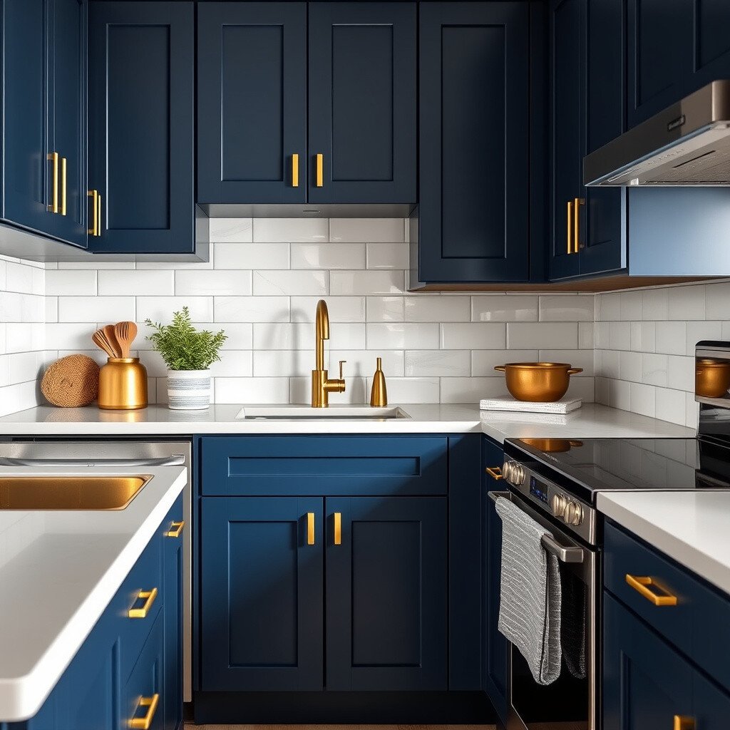 Gold pulls are sleek and stylish, offering a touch of glamour. This look is perfect for anyone who loves bold colors but still wants a touch of elegance. Navy blue is also a versatile color that can complement various kitchen styles.