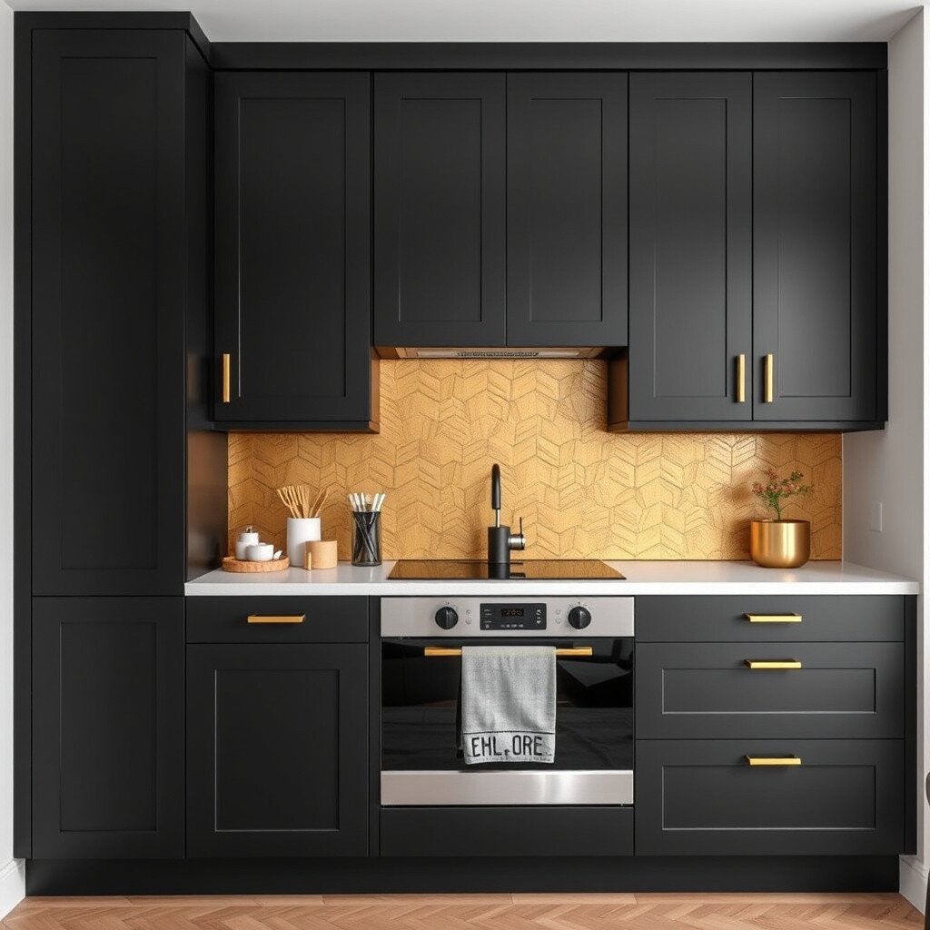 Matte black cabinets are ultra-modern and sleek. Paired with gold handles, they create a stunning contrast that feels both edgy and elegant.