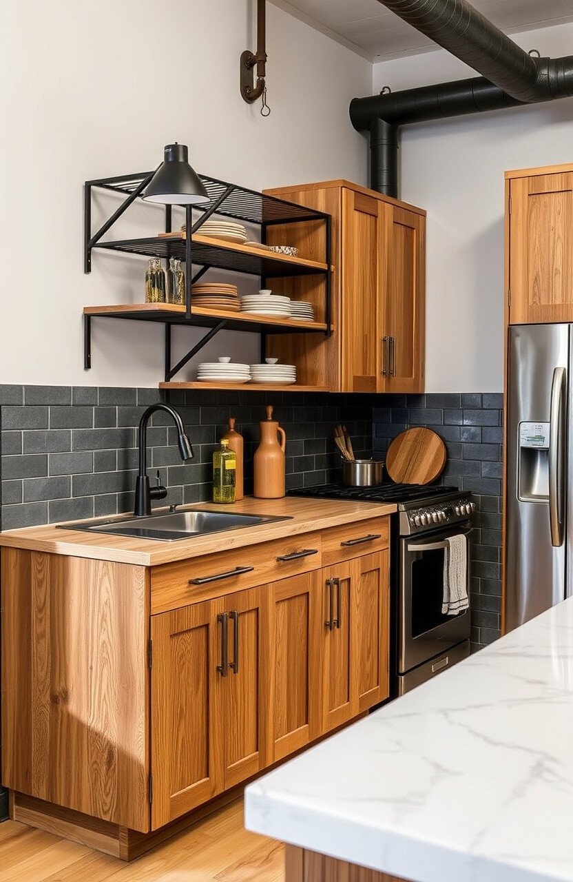 This look is perfect for city kitchens or lofts. Use metal shelving and exposed pipes for added industrial flair.
