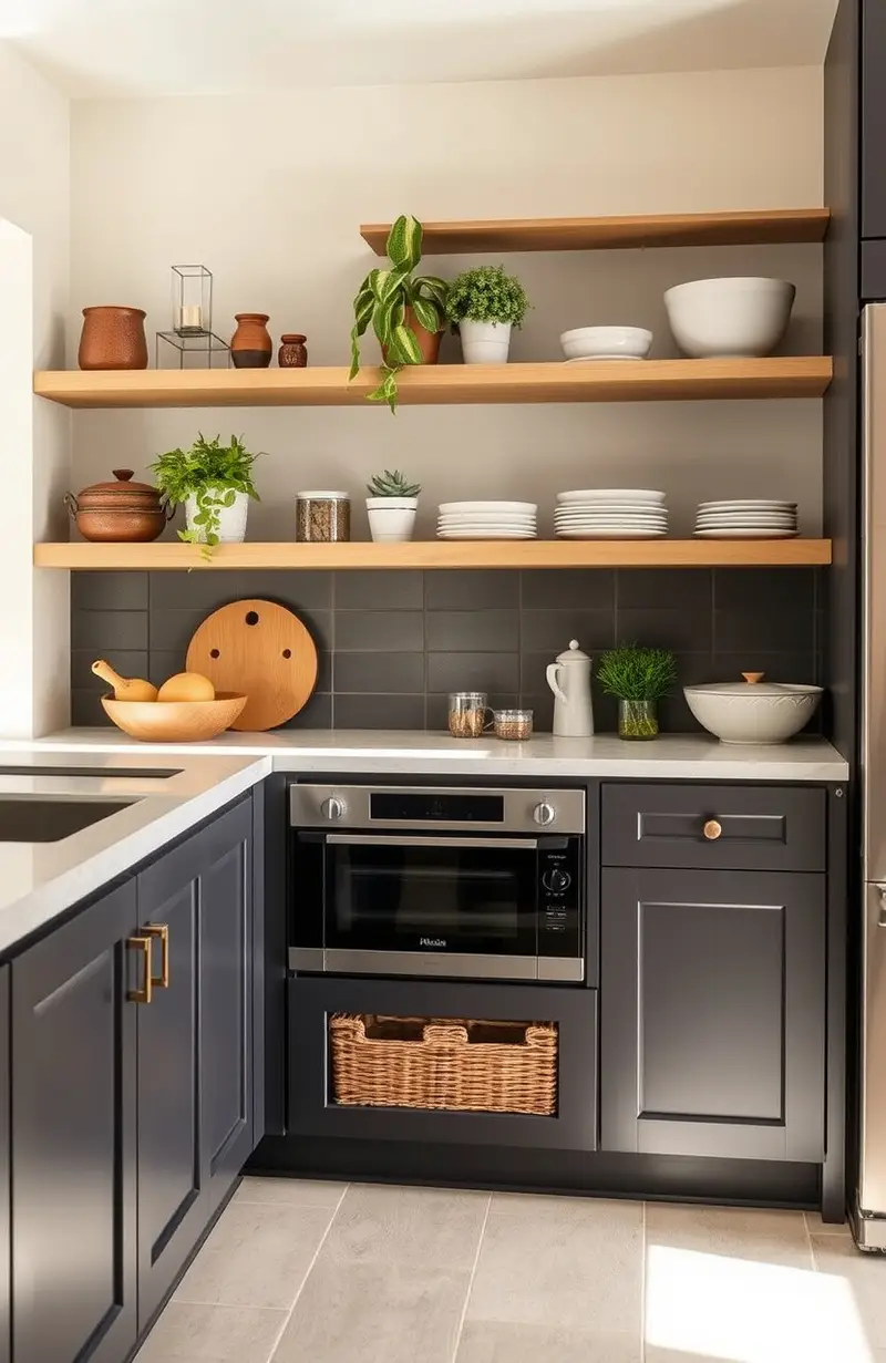 Open shelves are like a breath of fresh air in your kitchen. They make the space feel larger and more open.