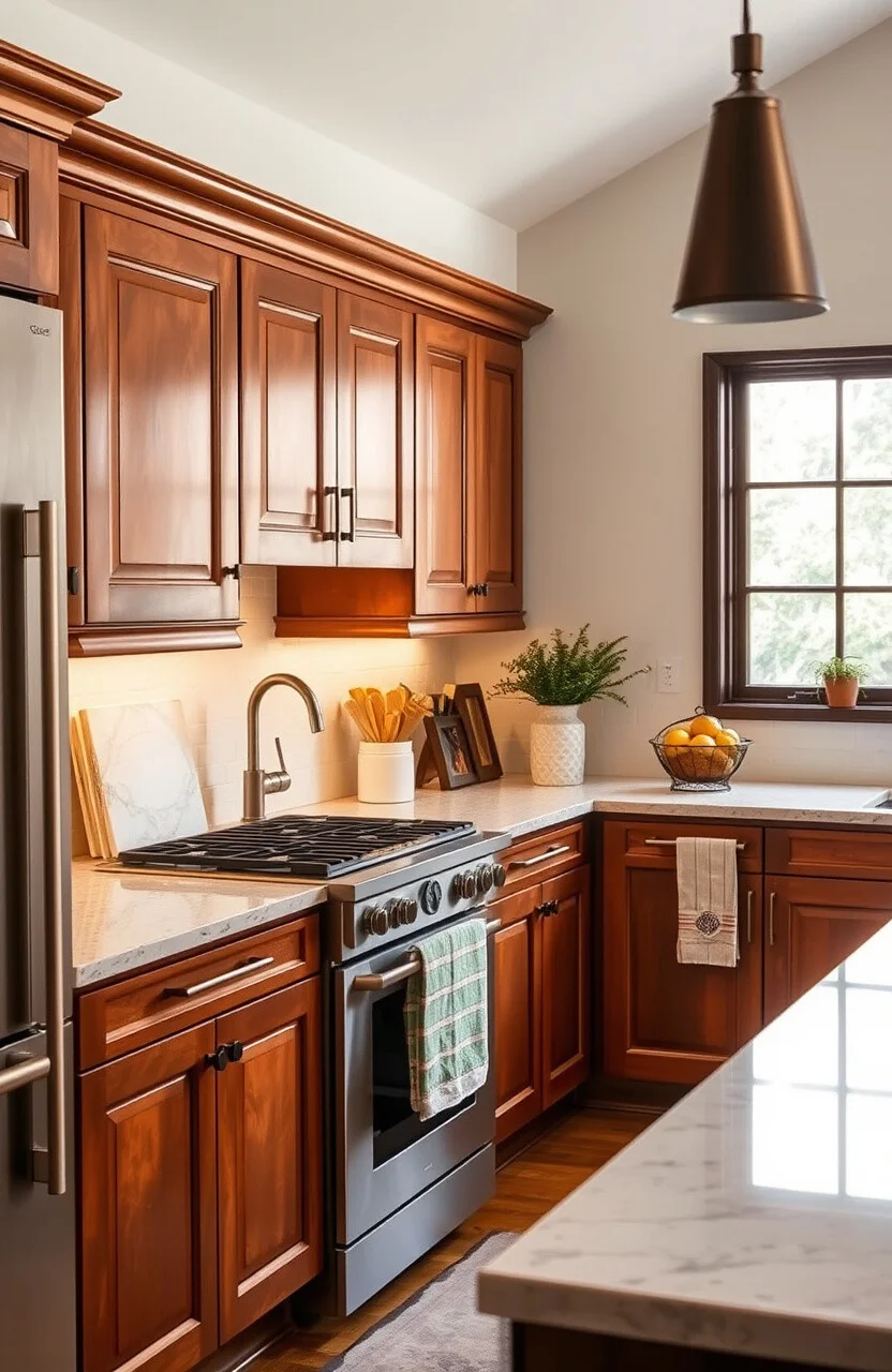 This style uses copper finishes for a warm, inviting look. It’s ideal for creating a cozy, sophisticated kitchen.