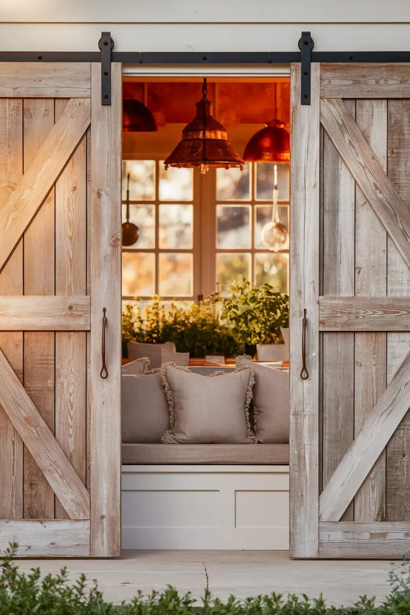 Sliding barn doors add rustic charm. They’re perfect for separating spaces.