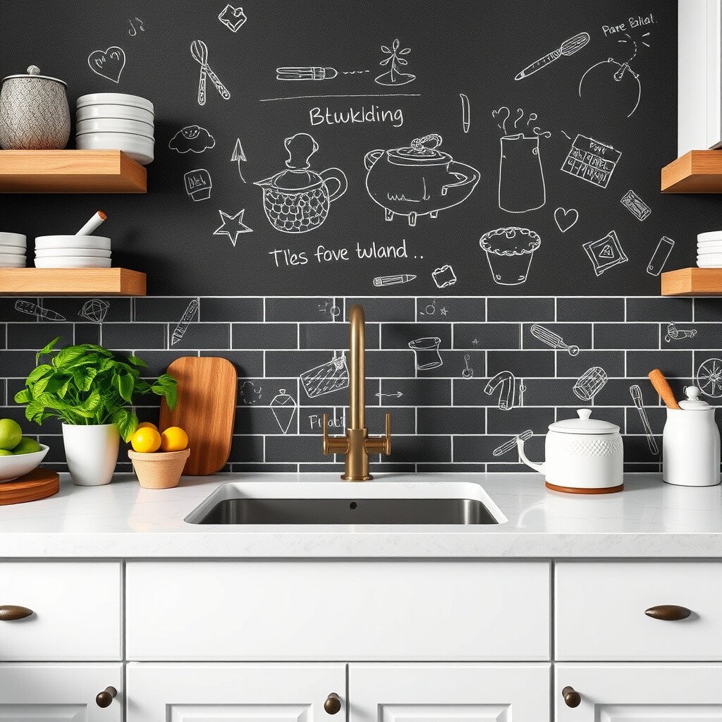 Chalkboard tiles offer a creative and functional twist. You can jot down recipes, grocery lists, or even let the kids doodle while you cook.