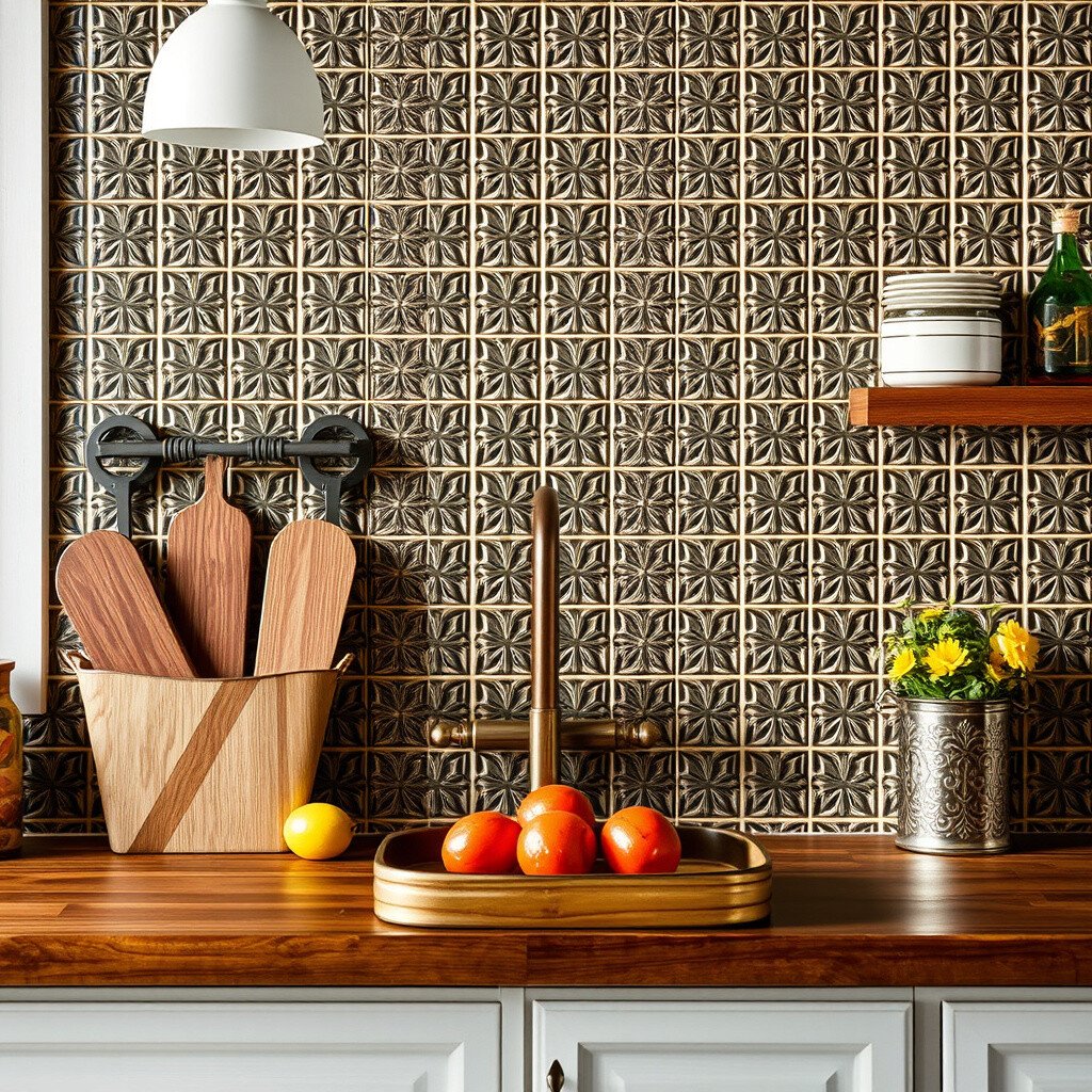 For a touch of nostalgia, consider tin tiles. They add a vintage charm that’s hard to resist, reminiscent of old-fashioned diners and farmhouse kitchens.