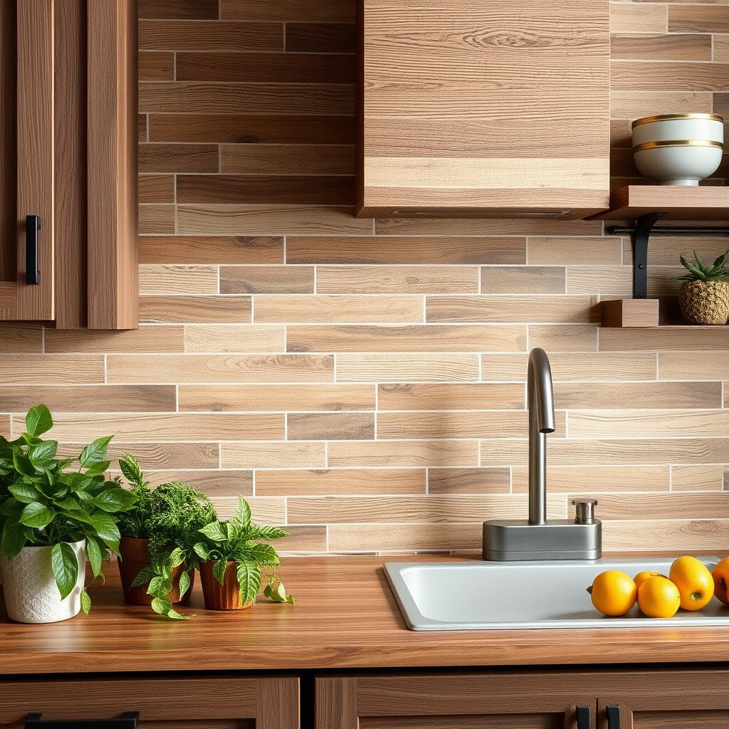 These tiles are resistant to water and stains, making them ideal for kitchen use. Pair with green plants for a natural touch.