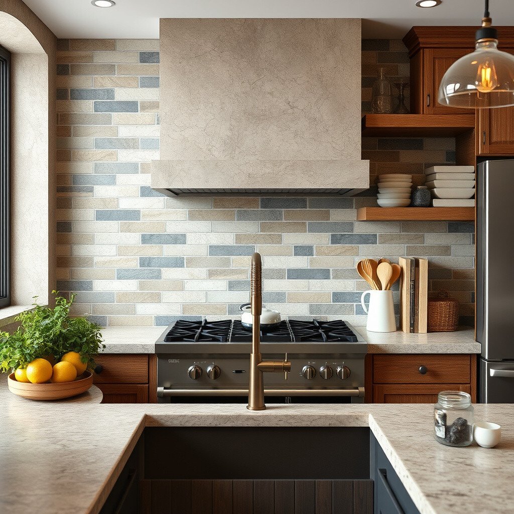 For a kitchen that feels grounded and natural, stone tiles are the way to go. They offer unique textures and colors, bringing an earthy vibe.