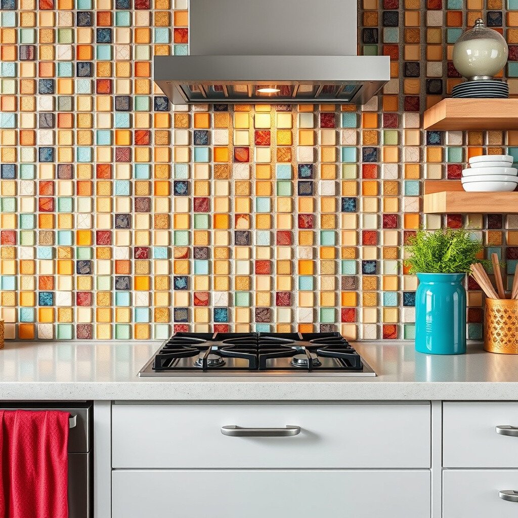 Mosaic tiles offer a splash of color and complexity, perfect for creating a cheerful kitchen atmosphere. These small tiles come in a variety of colors and materials.