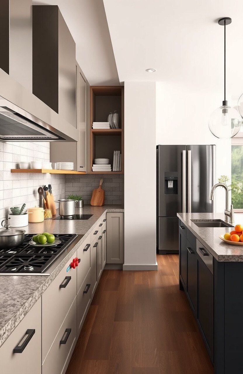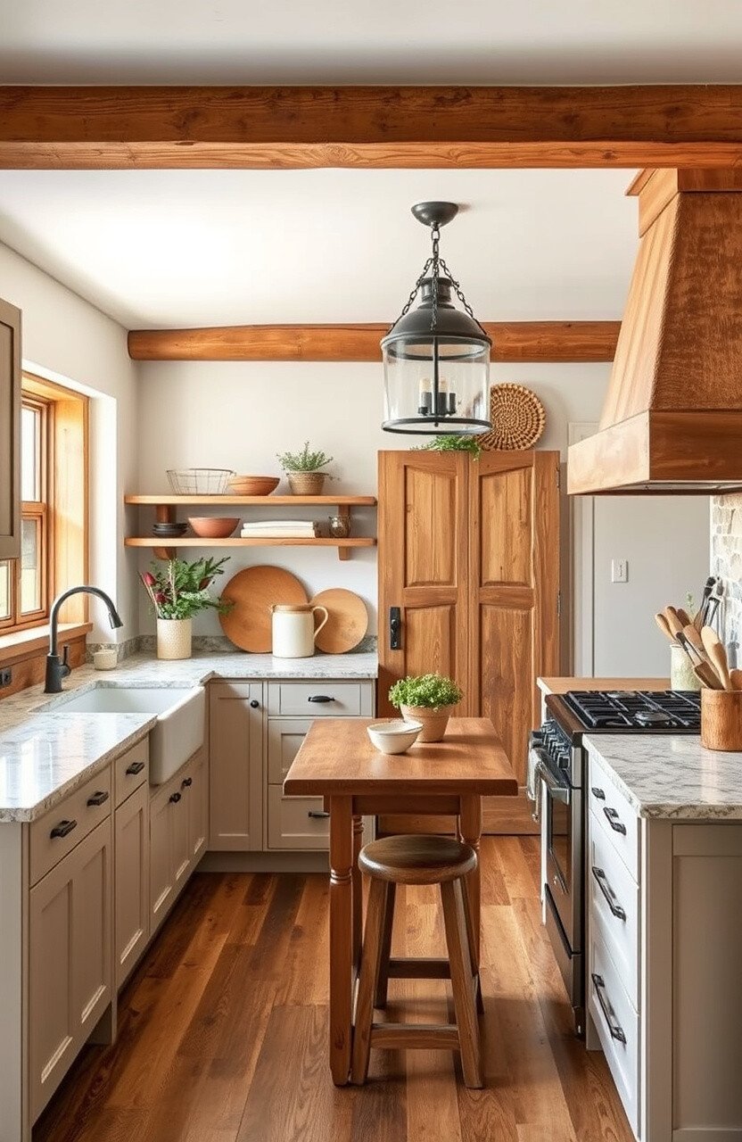 Add warmth with wooden elements and minimal decor. This style is perfect for creating a peaceful and organized cooking space.
