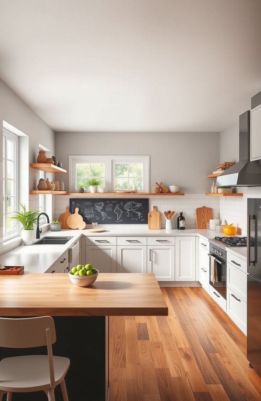 Consider a chalkboard wall for fun notes or kids’ artwork. Bright colors and easy-to-clean materials make it a joy for everyone.