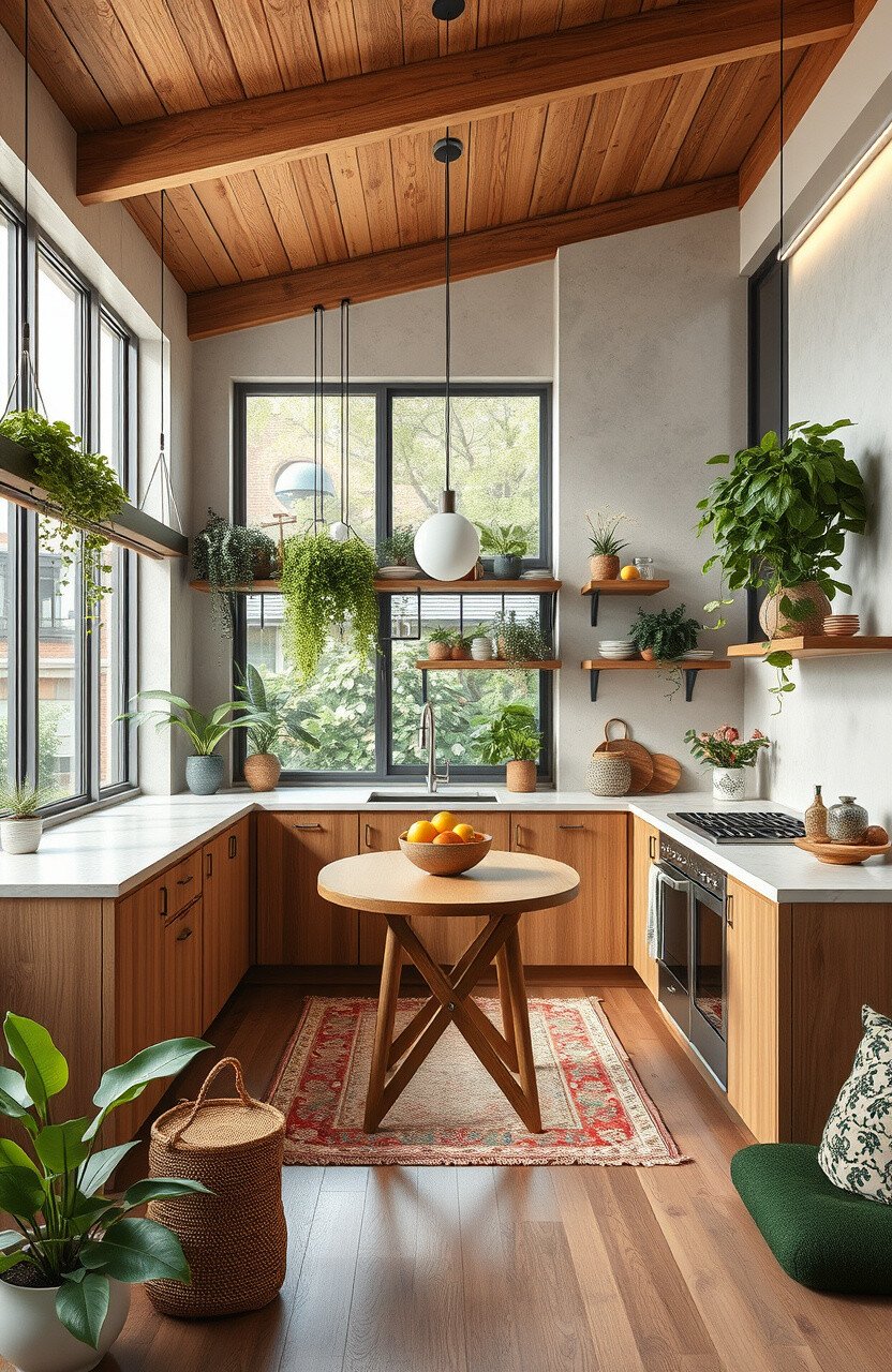 If you love eclectic styles, a bohemian L-shaped kitchen might be for you. It’s a mix of colors, patterns, and textures that create a cozy, artistic space.