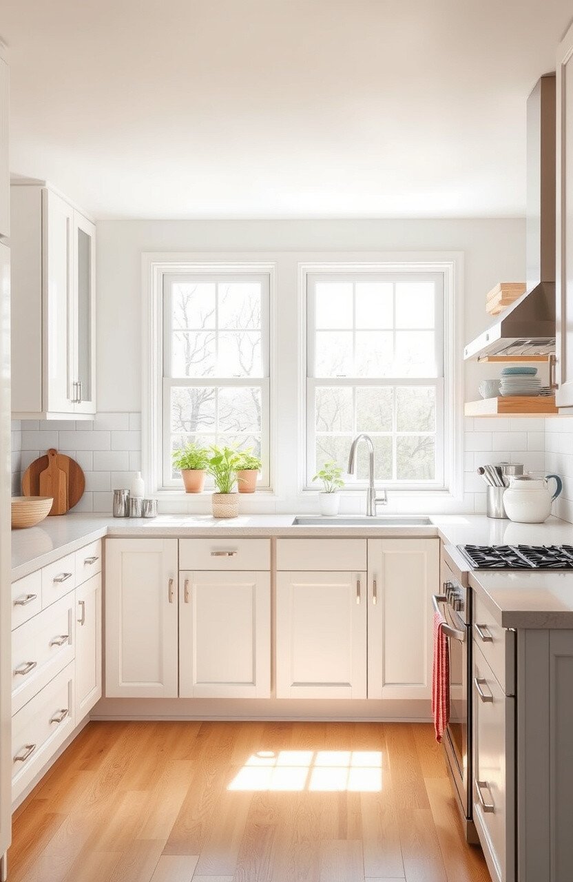 Picture a kitchen filled with sunlight, thanks to large windows and a pale color palette. L-shaped layouts can make a small kitchen feel airy and open. Use white cabinets and pastel accents for a fresh look.