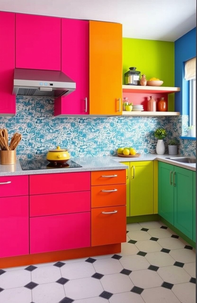 Choose vibrant hues for cabinets or striking tiles for the backsplash. The unique appeal is the fearless use of color.