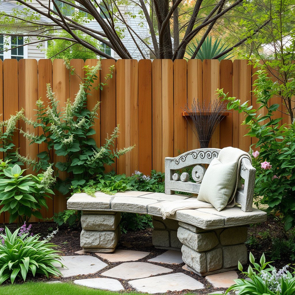 Imagine a quiet corner of your yard with a charming stone bench. It’s the perfect spot for reading and reflection.