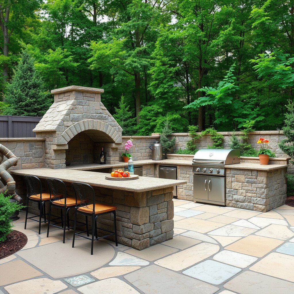 A stone outdoor kitchen combines function and beauty. Imagine cooking alfresco with a stone grill and countertops.