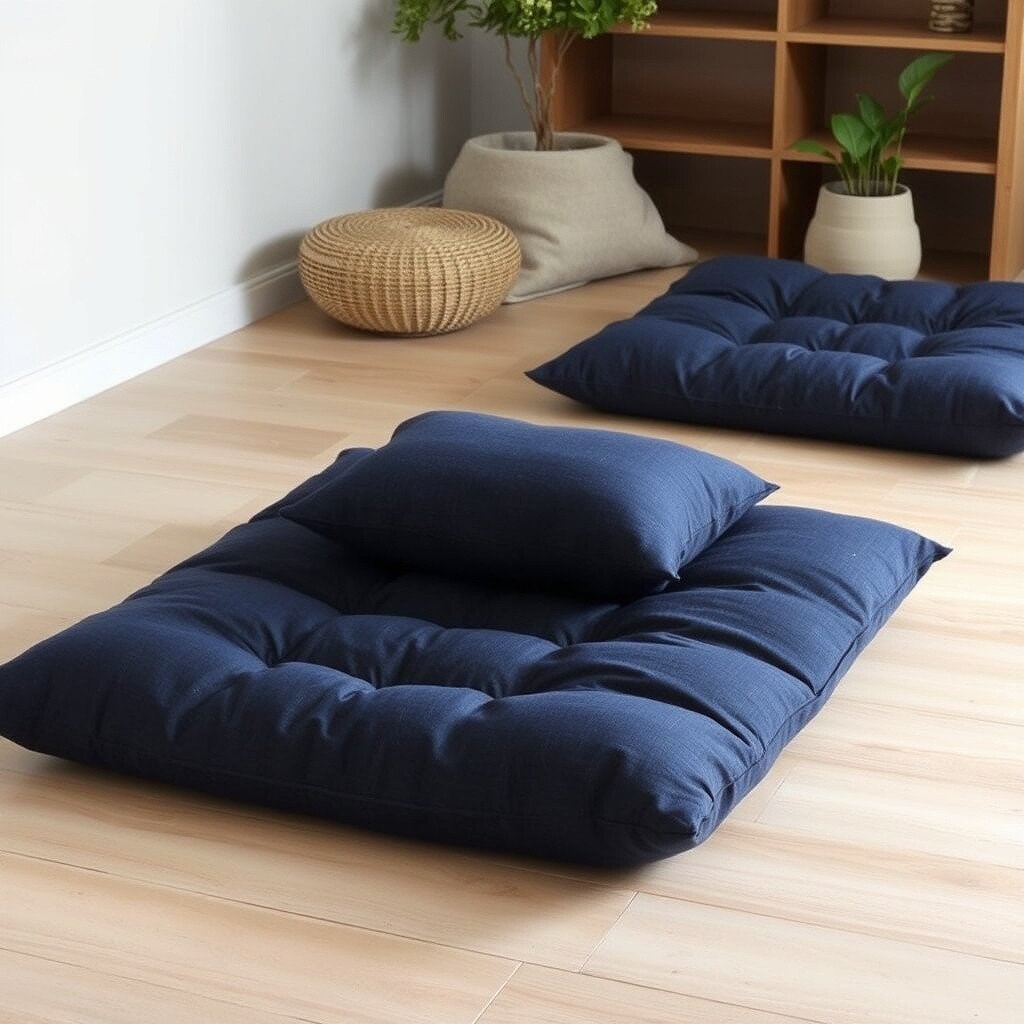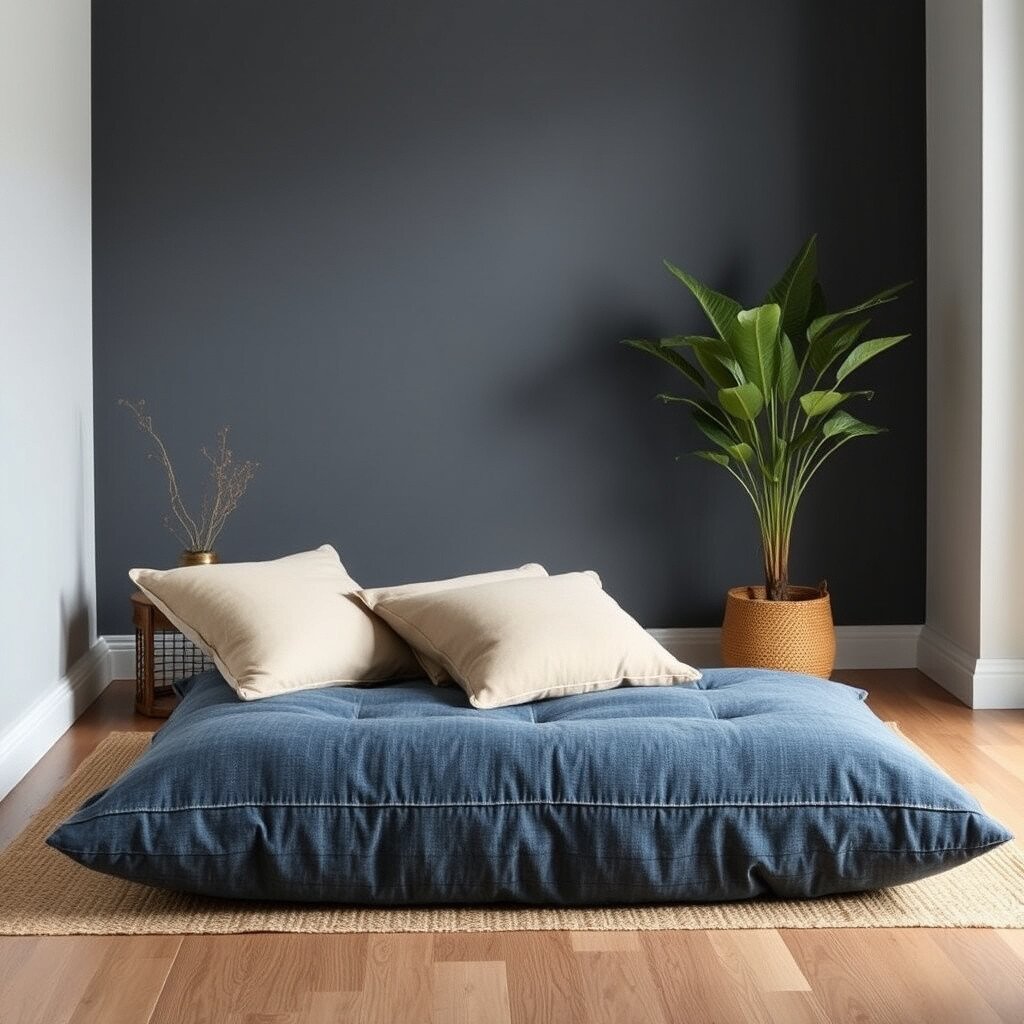 Create a serene space for yoga or meditation with floor cushions. The denim provides a stable yet comfortable base for your practice.