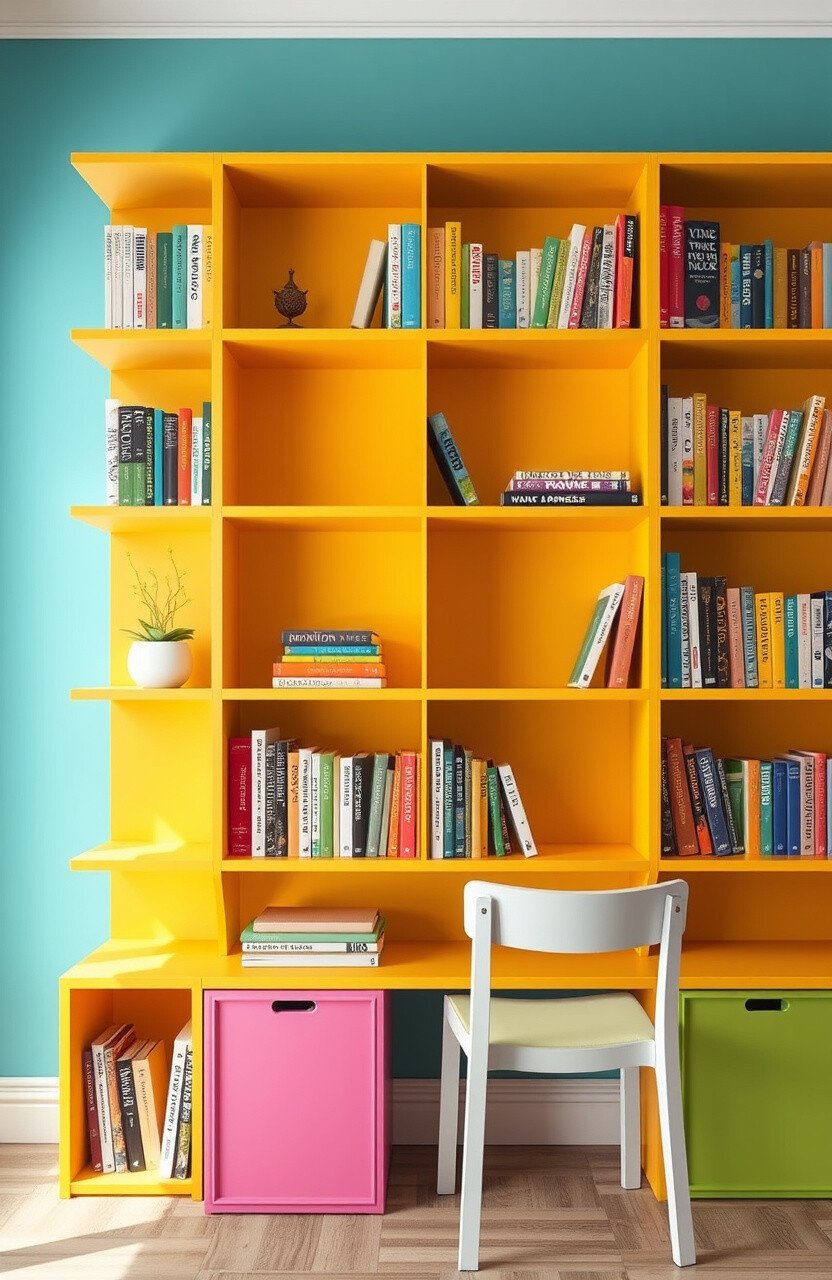 Brighten up your learning space with colorful bookshelves. They can reflect your personality and style.
