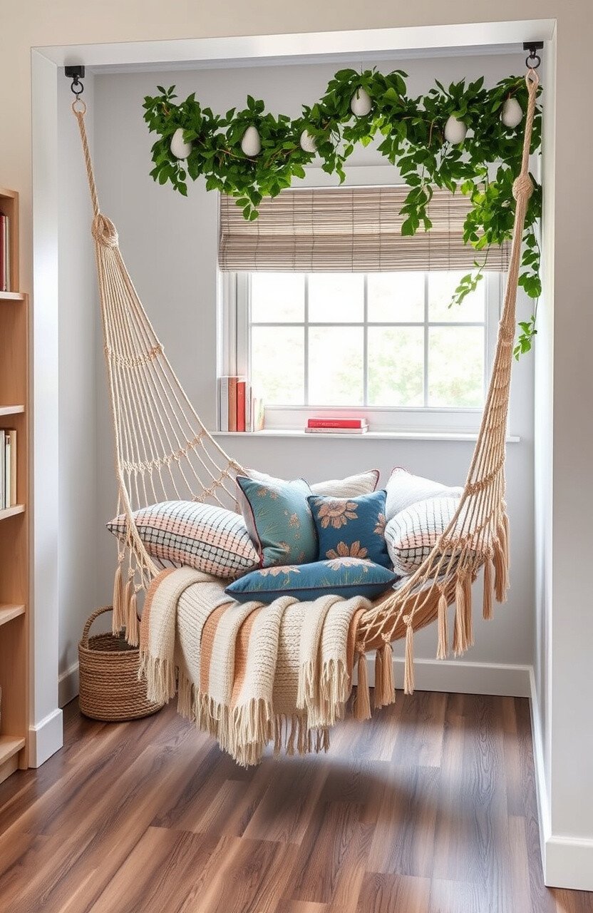 Create a cozy corner nook with soft cushions and a comfy chair. A small table can hold your books and a lamp.