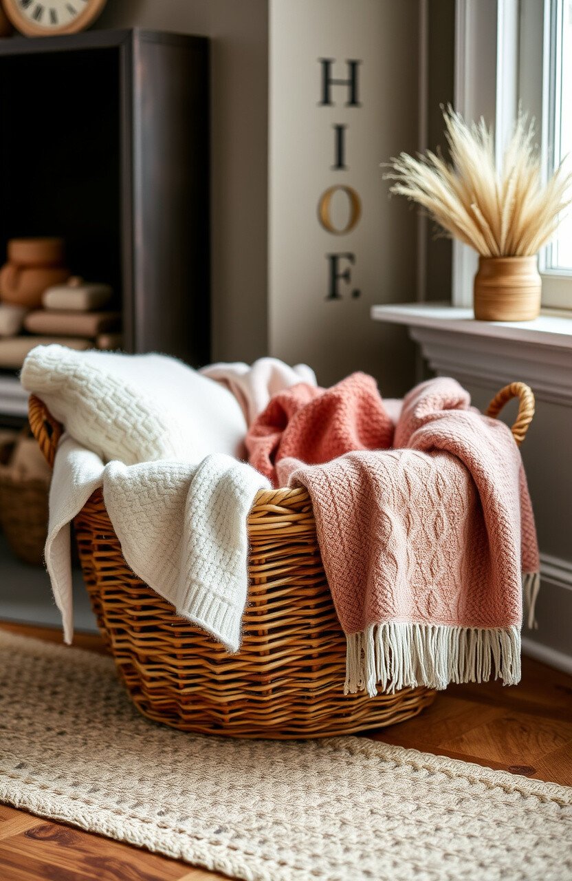 Choose a basket that complements your decor. Fill it with soft and cozy blankets or throws.