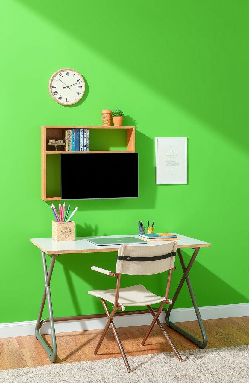A bright accent wall adds energy and focus. It’s an effective way to transform a room.