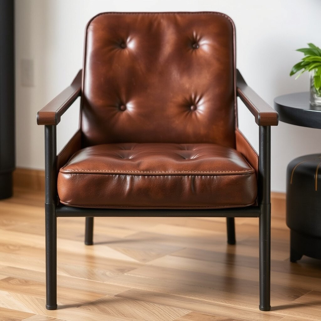 For a touch of industrial chic, consider an accent chair with leather and metal details. The combination of materials adds interest and texture.