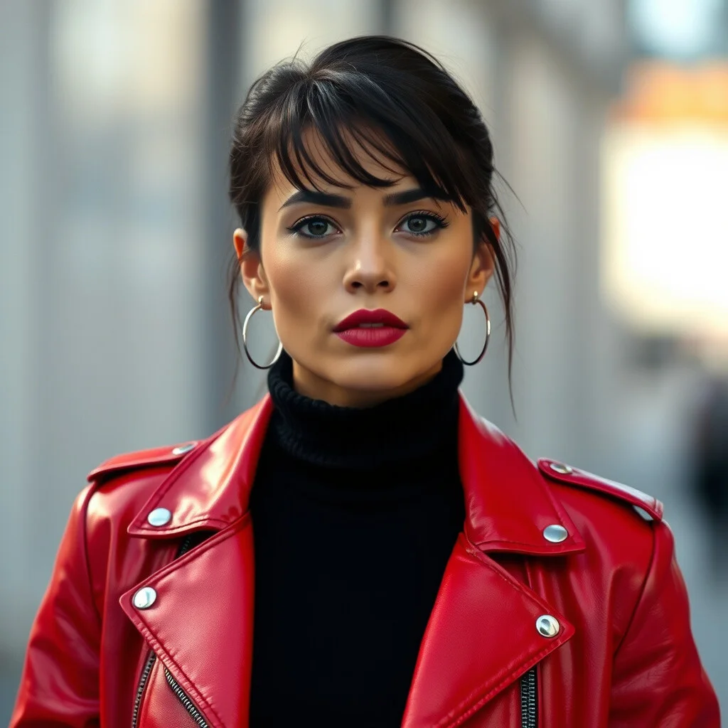 For those wanting to make a statement, a red leather jacket over a black turtleneck is bold and confident. It’s a powerful look for any occasion.